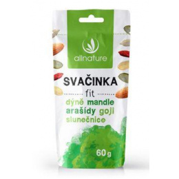 Allnature Svačinka Fit vám pomůže navrátit chuť do života. Nevěříte? Kombinace dýňových a slunečnicových semínek, sušených plodů goji, arašídů a mandlí je přesně to pravé ořechové pro náročné dny. Zároveň se ji hodí mít po ruce ve chvílích, kdy byste si rádi zamlsali. Vybraná semínka, oříšky a sušené plody jsou nutričně bohatým zdrojem cenných živin i potřebné energie. Kromě skvělé chuti navíc jistě oceníte i praktické balení, které se vejde do každé kabelky či tašky.