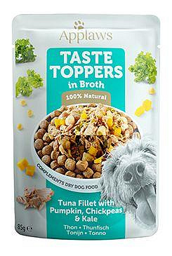Chceš svému pejskovi přilepšit nebo zchutnit granule, protože mu už tolik nejedou? Vyzkoušej Applaws Taste Toppers společně s granulemi a uvidíš. Kolekce Taste Toppers nabízí široký výběr chuťových variací v masových konzervách, kapsičkách a vývarových sáčcích. Je ideální pro zchutnění, zatraktivnění a obměnu chuti běžného granulovaného krmiva. Díky Applaws Taste Toppers můžete svému pejskovi podávat měsíce stejné granule (vybírejte jen kvalitní) a každý den je zpestřit jinou chutí. Můžete podávat i jako svačinku nebo jako samostatný doplněk ke kompletnímu krmivu.