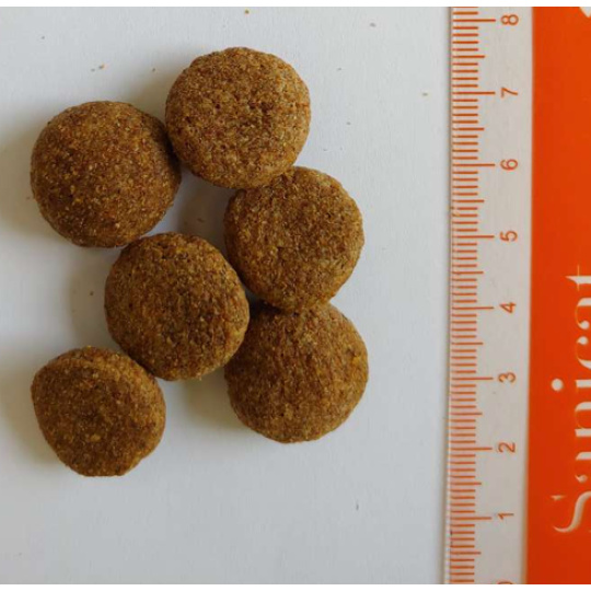 Analytické zložky: hrubá bielkovina – 24 %, hrubá vláknina – 2,2 %, hrubý tuk – 11 %, hrubý popol – 7,2 %, vlhkosť – 9 %, vápnik – 1,2 %, fosfor – 0,9 %, omega-3-mastné kyseliny – 0,22 %, omega-6-mastné kyseliny – 1,86%