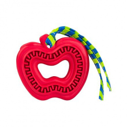 Dentálna hračka jablko prírodná guma pre šteniatka s látkovým strapcom 8 cm, HipHop Dog