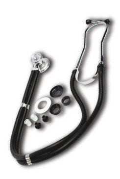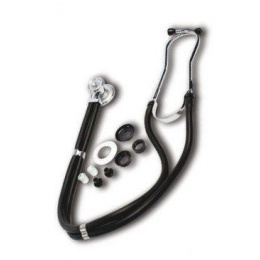 Profesionální fonendoskopy typu Rappaport s hrudními snímači z chromované zinkové slitiny s vysokou hustotou pro vynikající přenos zvuku. Dvě silnostěnné hadičky o délce 560 mm bez obsahu latexu zajišťují individuální přenos zvuku z hrudního snímače do obou uší. Vynikající přenos zajišťuje velký binaurál z chromované mosazi. Sada příslušenství obsahuje hrudní snímač z chromované zinkové slitiny pro dospělé i pro pediatrické pacienty, tři černé plastové nechladicí snímače, dvě náhradní membrány různých velikostí a dva páry ušních olivek. Celková délka je 730 mm s průměrem hlavy 45/32 mm.