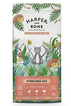 Harper and Bone Cat Sterilised příchutě farmy složené pouze z nejkvalitnějších surovin s vysokým podílem masa, přídavkem superpotravin a čerstvé zeleniny, zaručující prospěšné živiny a přirozenou chuť pro dokonale vyváženou výživu.