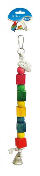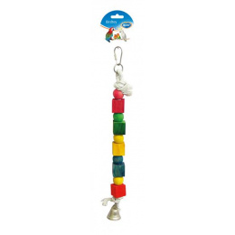Hračka DUVO+ lano pre vtáky s drev.kockami a zvoncom 35 cm