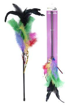 Oblíbená hračka pro kočky - mávatko s peřím . Hra a zábava bez bolestivých škrabanců´.