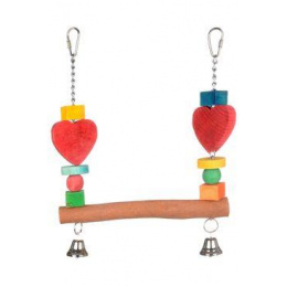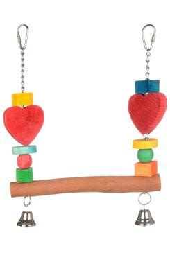 Dřevěná houpačka se zvonky, kostkami a srdíčky pro malé, střední a velké exoty.