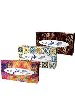 Jemné bílé dvouvrstvé papírové kapesníky Linteo vám zaručí vysokou jemnost, měkkost a pevnost. Tyto papírové kapesníčky jsou vyrobeny ze 100% celulózy. V krabičce, která má moderní zdobení je 100 ks, v kartonu jsou namíchány čtyři barevné varianty krabiček, volba barvy není možná, k dostání dle skladové dostupnosti.