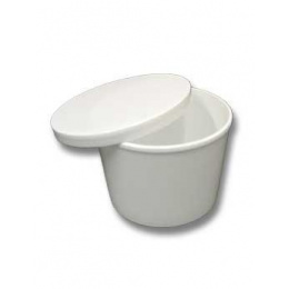 Lékárenský plastový kelímek s víčkem, o objemu 100 ml, vyrobený ze zdravotně nezávadných vstřikovaných plastů, určený zejména pro farmaceutický průmysl.