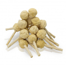 Kiddog Buffet Snack je pamlsek z mořské tresky ve tvaru kuličky nasazené na buvolí tyčinku. Je vyroben ze 100% bílé ryby - mořské tresky, která obsahuje vynikající bílkoviny a nenasycené mastné kyseliny - omega 3. Velmi chutný pamlsek bez obilovin a cukru. Vhodný pro všechna plemena psů všech věkových kategorií.