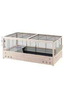Klece Arena jsou od začátku vybaveny veškerým komfortem pro přivítání vašich mazlíčků: krmítko na seno, plastová miska a láhev na pití, domeček s užitečnou policí a žebříkem. Stanoviště jsou velmi stabilní a vybavená patkami zajišťujícími perfektní základnu. Co se údržby týče, není nic jednoduššího: Arena má praktické vytahovací plastové dno, velmi užitečné při sbírání nečistot, zbytků jídla a steliva a snadno se čistí.