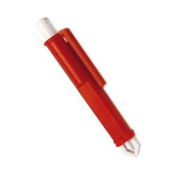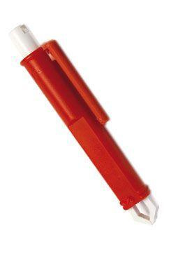 Kleště na odstraňování klíšťat, ve tvaru pera. Plastové, červená barva.