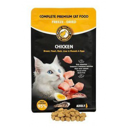 Prémiové kompletní krmivo pro kočky s 95 % masa. Díky šetrné lyofilizaci si zachovává přirozenou chuť, aroma i důležité živiny bez použití umělých konzervantů. Grain-free receptura staví na pečlivě vybraných surovinách, které respektují přirozené potřeby kočky. Krmivo je velmi dobře stravitelné a vhodné i pro citlivější jedince.
