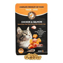 Prémiové kompletní krmivo pro kočky s 95 % masa. Díky šetrné lyofilizaci si zachovává přirozenou chuť, aroma i důležité živiny bez použití umělých konzervantů. Grain-free receptura staví na pečlivě vybraných surovinách, které respektují přirozené potřeby kočky. Krmivo je velmi dobře stravitelné a vhodné i pro citlivější jedince.