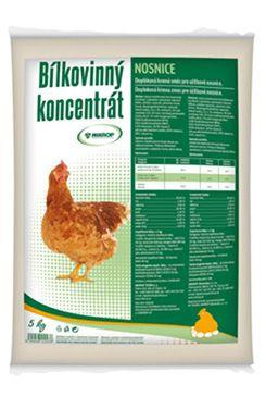 Kvalitný bielkovinový koncentrát pre nosnice, ktorý slúži na dopĺňanie kŕmnych dávok. Obsahuje vysoký obsah dusíkatých látok a esenciálnych aminokyselín z vysoko kvalitného sójového extrahovaného šrotu. Minerálne krmivo zabezpečí dostatočný obsah Ca, P, Na a ďalších dôležitých prvkov pre kvalitnú výživu nosníc v čase znášky.