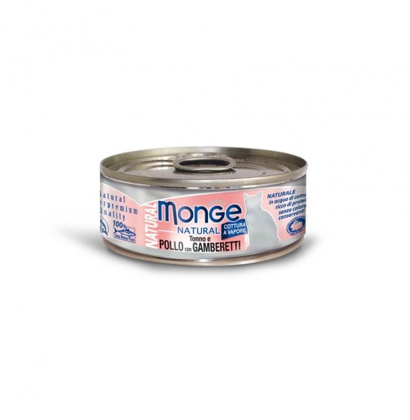 MONGE NATURAL tuniak s kúskami kurčaťa a kreviet pre mačky 80 g