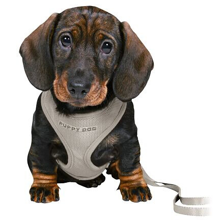 JUNIOR postroj s vodítkom pre šteniatka, svetlosivá