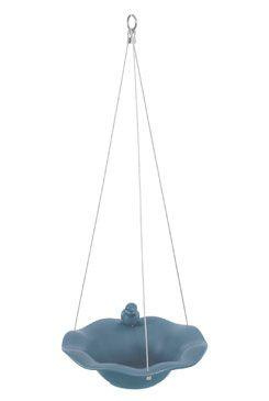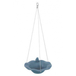 Karamická miska s dekorací ptáčka na okraji může sloužit jako pítko nebo koupel pro ptáky. Keramika je mrazuvzdorná a je opatřena pevnými kovovými lanky pro zavěšení. O misky 26cm.
