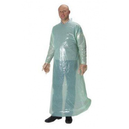 Světle zelený, nesterilní, tloušťka 0,03 mm, délka pláště 159cm; v rozpětí rukou 170 cm;