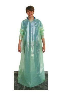 Nesterilní jednorázové ochranné pláště s dlouhými manžetami. Vyrobeny ze zeleného polyethylenu (PE).