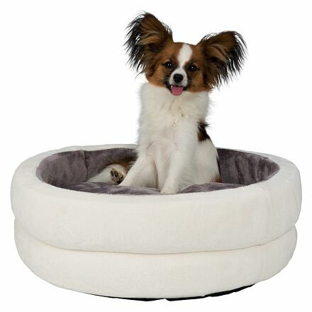 Okrúhly pelech LEVI s vankúšom plyšový, krémovo/sivý ø 45 cm