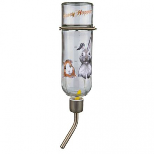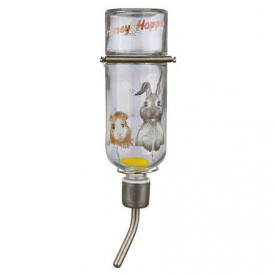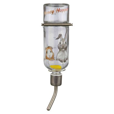 Sklenená napájačka Honey & Hopper s kovovým pítkom 125 ml, napr. veľký škrečok, činčila