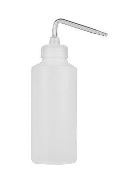 Plastová nádoba se skleněnou střičkou.