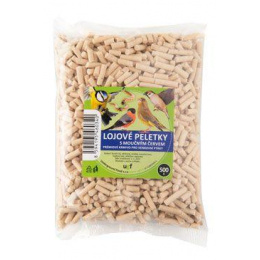 Peletky jsou obohaceny o oříšky a kvalitní bílkovinu z moučných červů, kteří jsou přirozenou potravou volně žijících ptáků. Lojové peletky lze krmit celoročně a představují snadno stravitelný zdroj energie pro dokrmování ptáků v zimě a v období krmení mláďat.