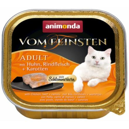 - vysoce kvalitní paštika Von Feinsten CORE s kuřecím a hovězím masem a mrkví pro dospělé kočky všech plemen