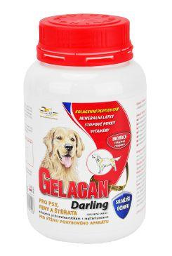 Gelacan® Darling obsahuje kolagenní peptidy CHP, které vyživují a regenerují kloubní chrupavky, šlachy, vazy a kosti a zmírňují až odstraňují tak následky předchozí nedostatečné výživy nebo poškození kloubů, jejich deformaci, zabraňují dalšímu úbytku chrupavek, zlepšují hybnost a zmírňují bolestivost. Dále obsažené vitamíny, minerální látky a stopové prvky ve vyváženém poměru vhodně obohacují krmnou dávku. Optimální poměr účinných látek zvyšuje vitalitu psa, zlepšuje tělesnou kondici a urychluje regeneraci organismu.