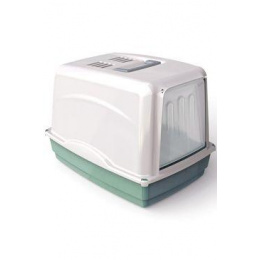 Krytá toaleta pro kočky. Díky této toaletě se nemusíte bát, že Vaše kočka bude substrát vyhrabávat ven. Navíc díky dvířkům a filtru s aktivním uhlím nemusíte mít strach ani z nepříjemného zápachu. Dvířka si kočka sama snadno otevře.