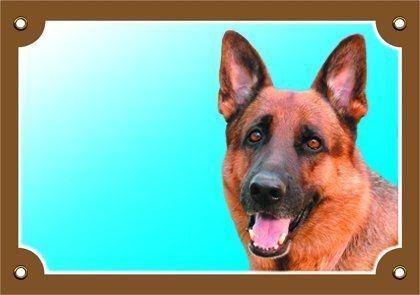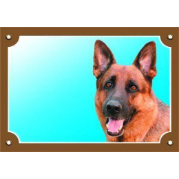 Farebná ceduľka Pozor pes, Nemecký ovčiak spredu