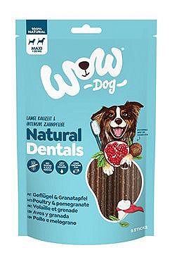 Krásné zoubky a svěží dech díky dentálním tyčinkám WOW Dog. Chutné, výživné, hypoalergenní a účinné! Dentální pamlsek pro denní péči o psí zoubky s hydrolyzovaným drůbežím proteinem, vápníkem, mátou a granátovým jablkem.